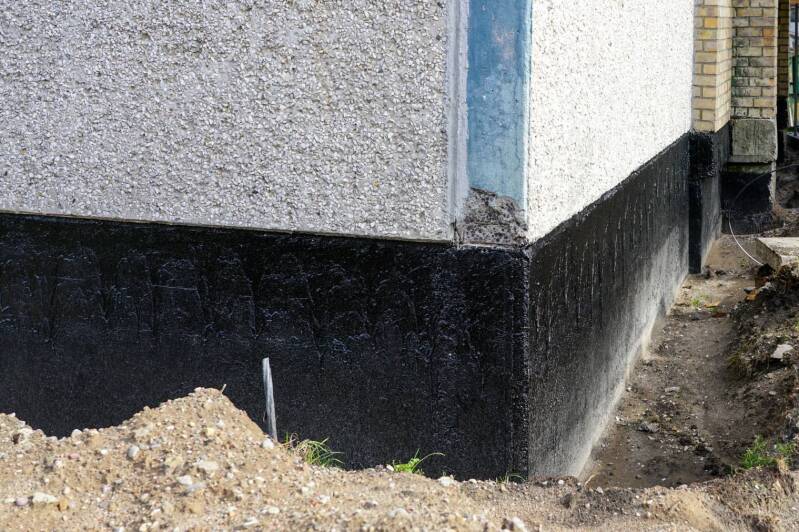 Application d’un enduit bitumineux ou d’une membrane d’étanchéité sur les murs de soubassement.