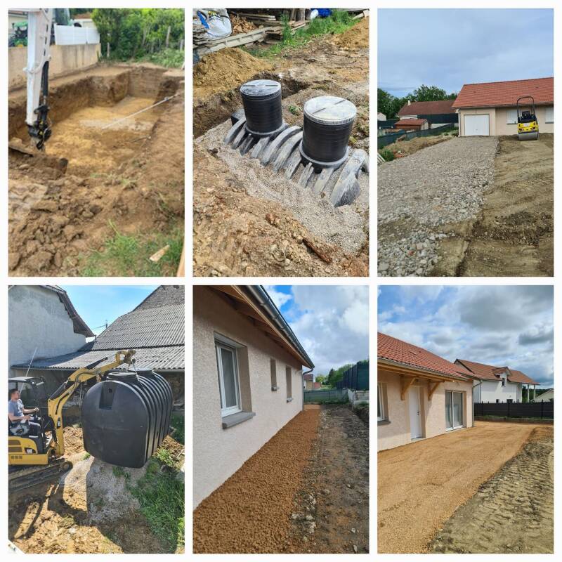 Terrassement Création de drain à évacuation d'eau pluviale drain à évacuation d'eau usée, pause et