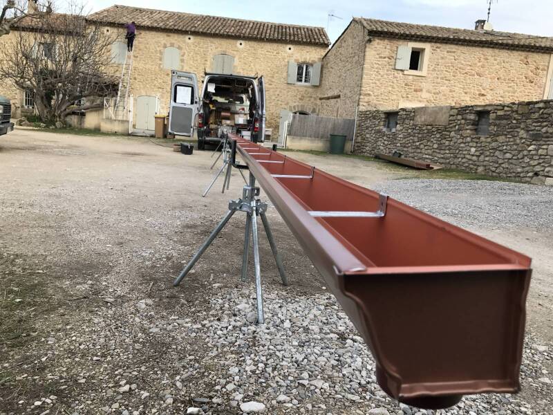 Fourniture de gouttières en aluminium PVC zinc (au choix selon le cahier des charges), de section adaptée à la surface de la toiture.